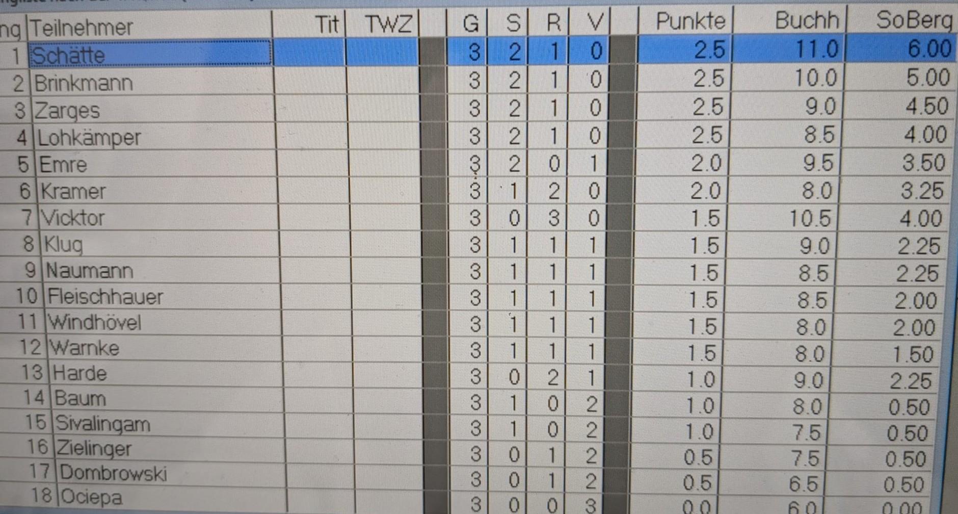 „Bei unserem 5. und letzten Mannschaftskampf hatten wir die 3. Mannschaft der SF Hemer zu Gast.