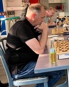 Ungefähr zeitgleich konnte Dietmar an Brett 6 unseren einzigen vollen Punkt einfahren. Wir haben uns sehr für ihn gefreut.  Es war seine erste gewertete klassische Partie nach so langer Zeit und gleich der volle Punkt. Mögen noch viele Punkte folgen.