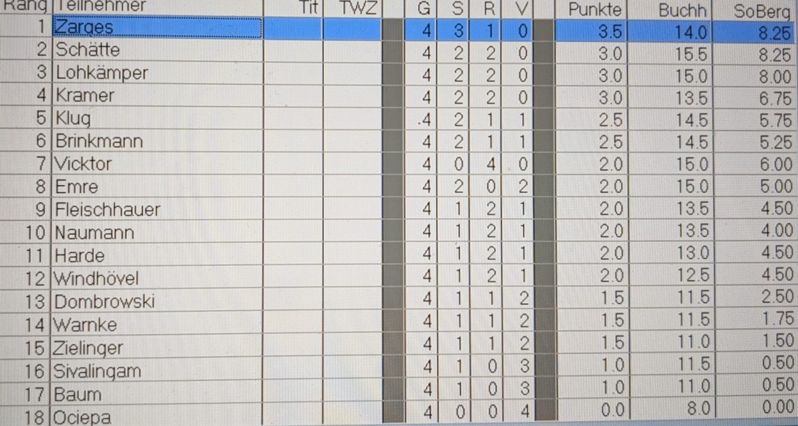 Das ergibt folgendes Tabellenbild nach Runde 4: