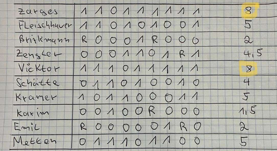 Fleischhauer10,5 (8)6 (5)5 (7)5 (8)23